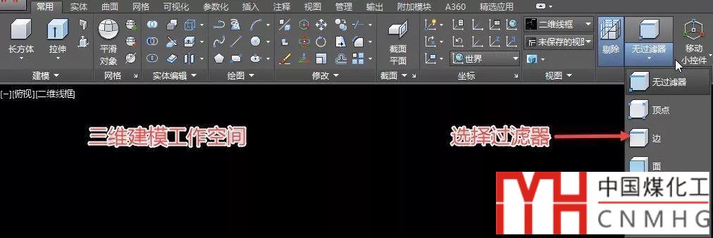 2、設(shè)置子對象過濾器。可以在多個(gè)三維功能區(qū)選項(xiàng)卡的“選擇”面板中找到,該過濾器指定在單擊三維對象時(shí)選定的默認(rèn)子對象。如果無過濾器處于選定狀態(tài),將選擇整個(gè)對象。
