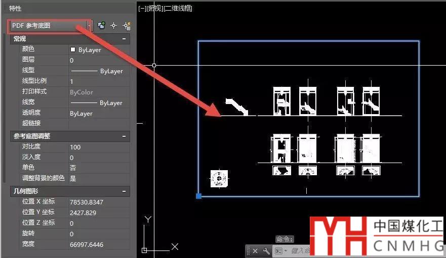 執(zhí)行輸入PDF命令后,可以選擇圖中已插入的參考底圖的部分區(qū)域或全部進(jìn)行轉(zhuǎn)換,也可以直接回車選擇一個新的PDF文件進(jìn)行輸入。