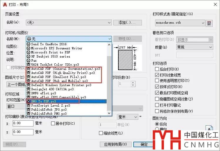 在CAD高版本中除了DWG TO PDF驅(qū)動外,還有多種針對不同需求的PDF打印驅(qū)動,這些PDF驅(qū)動只是預(yù)設(shè)的分辨率和尺寸不同,如果感興趣你可以看看這些驅(qū)動的區(qū)別。