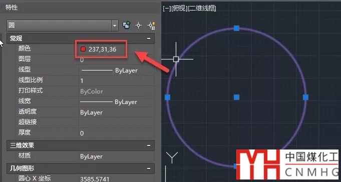 圖層或圖形設(shè)置成真彩色和配色系統(tǒng)顏色時(shí),顏色特性會(huì)顯示RGB的值,如下圖所示。