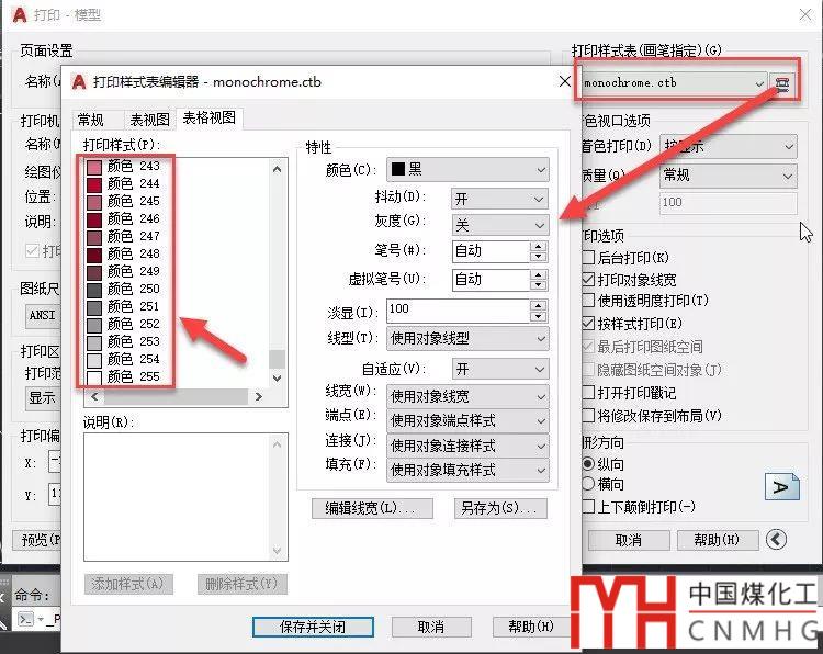 在CAD打印時(shí)我們通常使用CTB打印樣式表來(lái)控制打印輸出的顏色、線寬等其他特性,如下圖所示。