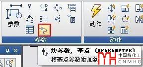 這時不用著急,先插入到這個位置。雙擊圖塊,彈出塊編輯對話框,單擊“確定”按鈕進(jìn)入塊編輯器。不管你用的是RIBBON界面還是經(jīng)典界面,在塊編輯相關(guān)的面板或工具欄中找到“參數(shù)”-“基點(diǎn)”,如下圖所示。