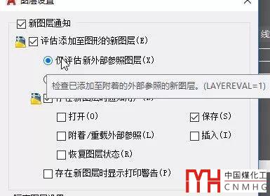 一般情況下我們會勾選“評估添加到圖形的新圖層”并單選“僅評估外部參照的新圖層”,也就是當(dāng)重載外部參照的時候會檢查是否有新圖層。
