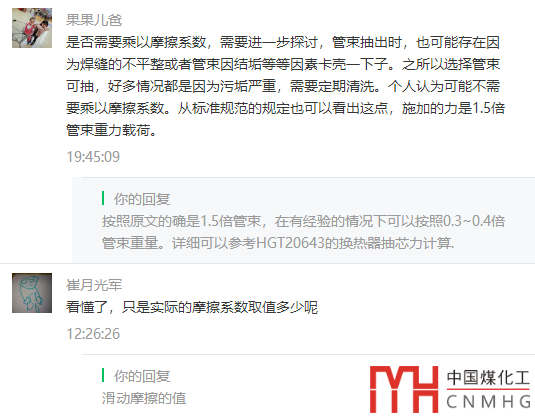 其實我也有疑問,的確,規(guī)范中是直接寫的抽出力按照1.5倍管束重,并未說要摩擦系數(shù),人為加個摩擦系數(shù),使得抽芯力降低了到了30%,并不是保守的算法。