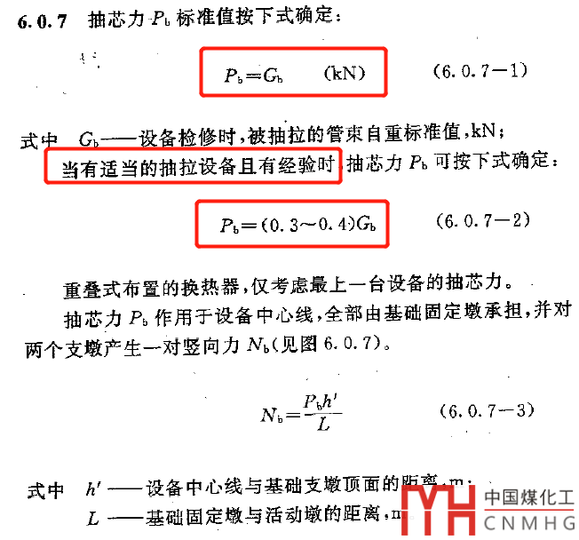 在HG/T 20643化工設(shè)備基礎(chǔ)設(shè)計規(guī)定中,對于換熱管束抽芯力對于基礎(chǔ)的影響是有計算方法的。