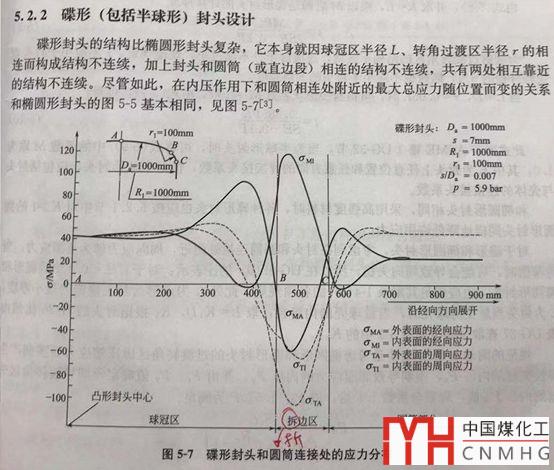 碟形封頭的應(yīng)力分布圖如下: