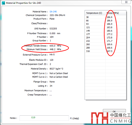朋友的碟形封頭用的雙相鋼,SA-240 S32205,抗拉強(qiáng)度665MPa,所以在計算碟形封頭時,不能再用本身的許用應(yīng)力186.9MPa,而是用的降低后的許用應(yīng)力值138MPa。