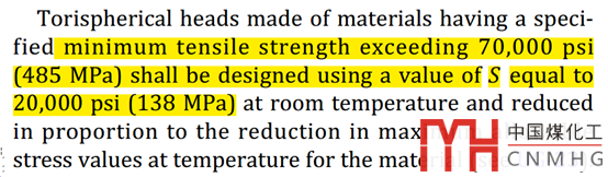 那是因為對于碟形封頭,在UG-32(d)中,對于最小抗拉強(qiáng)度高于485MPa時,封頭的最大許用應(yīng)力只能為138MPa。