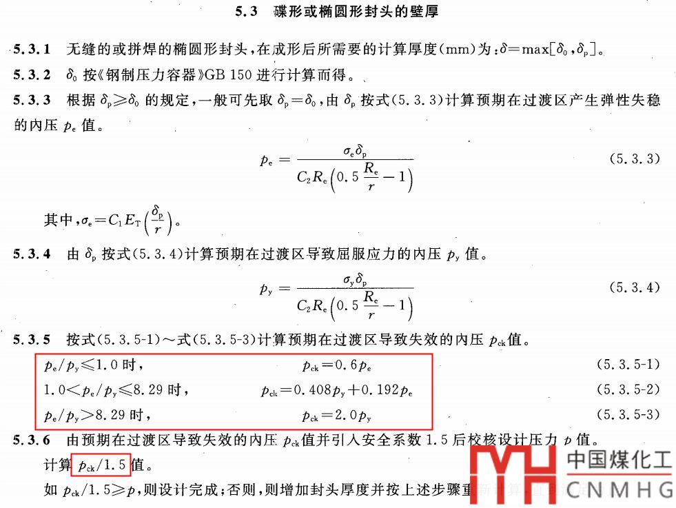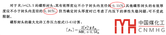 附錄1-4(f)不僅僅是計算通用的橢圓封頭,碟形封頭和錐形封頭的厚度。而且還考慮避免橢圓封頭和碟形封頭的轉(zhuǎn)角過渡區(qū)發(fā)生內(nèi)壓失穩(wěn)或者屈服破壞,計算其封頭的最大允許內(nèi)壓。