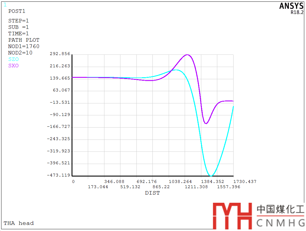 內(nèi)表面沿半徑方向的應(yīng)力變化圖,SZI為周向應(yīng)力: