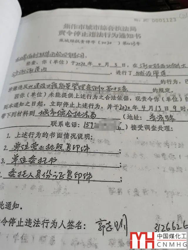 ▲焦作市城市綜合執(zhí)法局的執(zhí)法文書之一,要求停止施工。