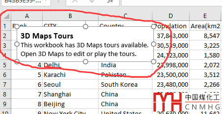 返回源數(shù)據(jù)表格,左上角出現(xiàn)一個對話框,提示本表格內(nèi)置了3D Map。