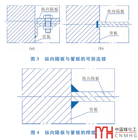 GB/T 151的6.8.4.3介紹了3種縱向隔板與管板的密封,兩種可拆結構,以及一種不可拆的焊接連接。