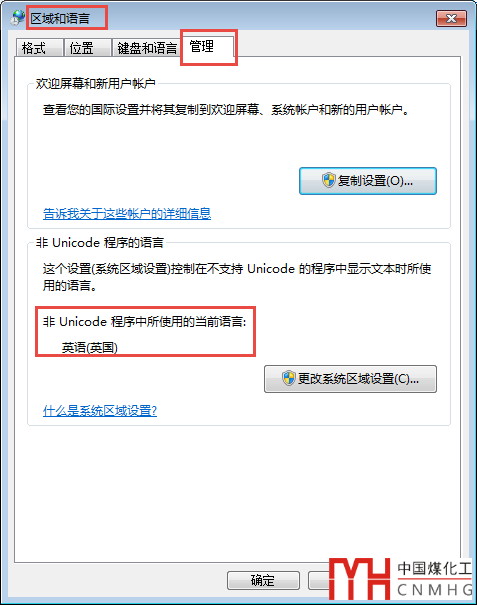 打開控制面板的區(qū)域語言選項(xiàng),發(fā)現(xiàn)果然如此,區(qū)域雖然設(shè)置的是中國,但語言設(shè)置的是英語(英國),如下圖所示。