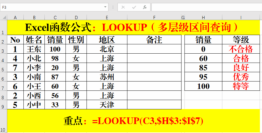 目的:查詢銷量所對(duì)應(yīng)的等級(jí)。