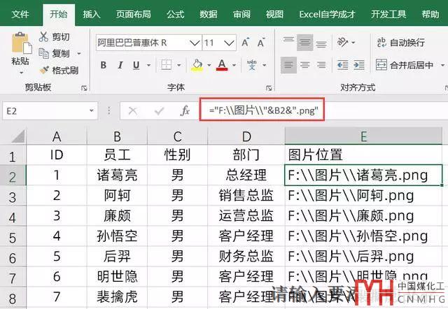 ?首先對原始數(shù)據(jù)表格時行預(yù)處理,我們添加一列為圖片的位置,然后輸入的公式是: