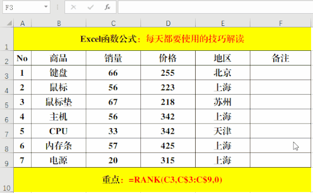 (一)Rank函數(shù)排序法。