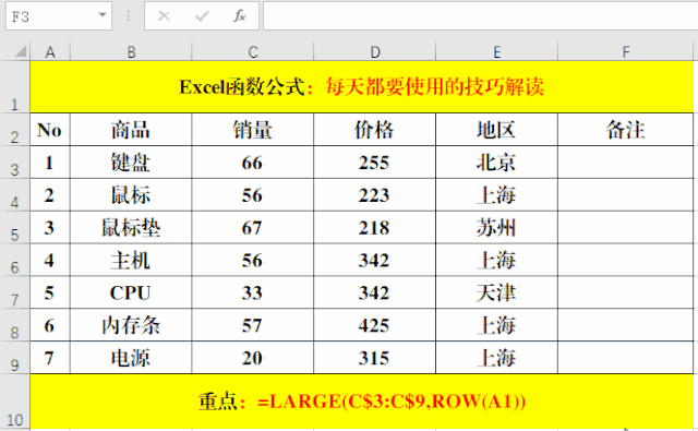 公式中利用Row函數(shù)獲取數(shù)值K,和Large函數(shù)的返回結(jié)果正好相反。