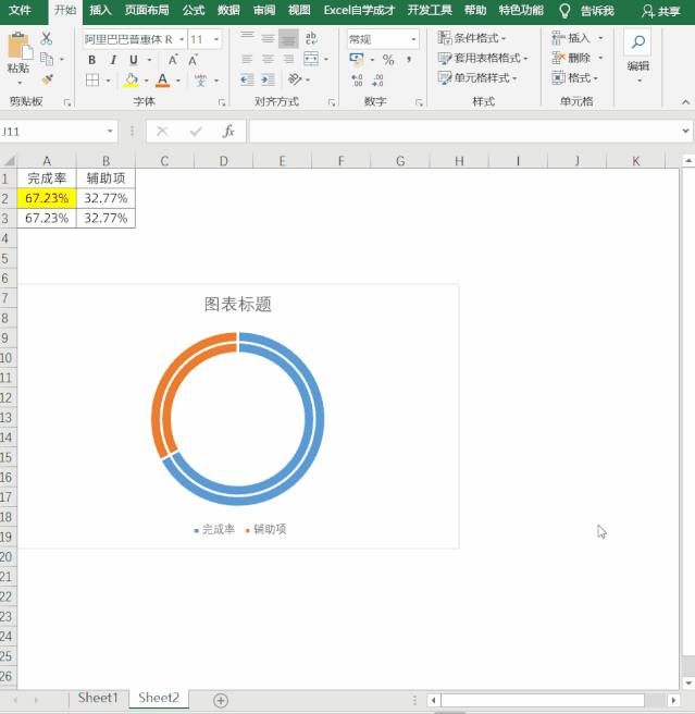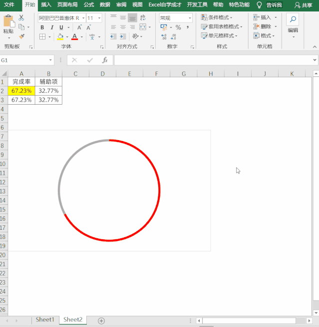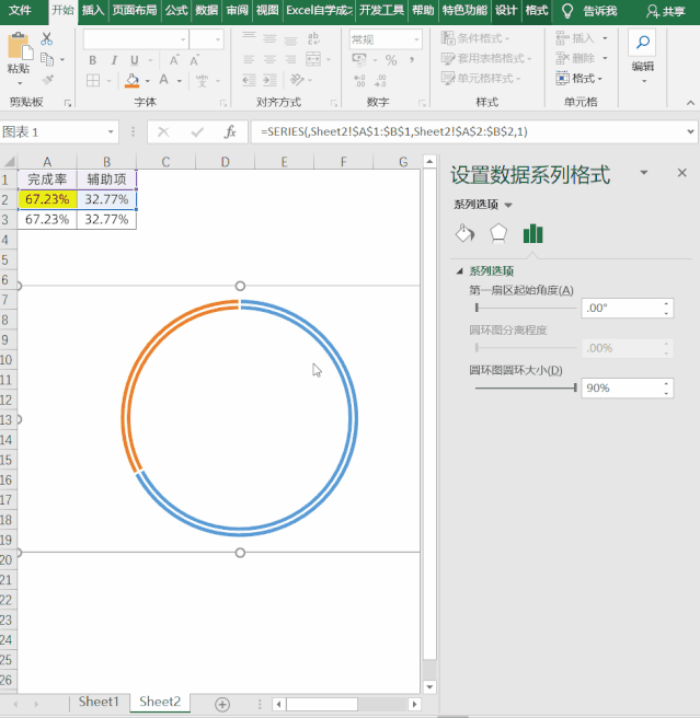 Excel簡(jiǎn)約纖細(xì)圓環(huán)圖制作,可視化百分比數(shù)據(jù)