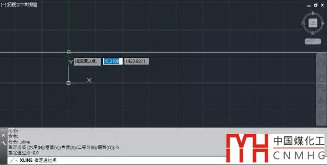 出現(xiàn)上述提示后,輸入H,回車,可以繪制水平的構(gòu)造線。軟件會(huì)提示:指定通過(guò)點(diǎn)。