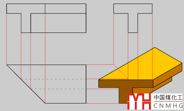 在繪制機(jī)械零件三視圖時(shí),可以利用構(gòu)造線來(lái)實(shí)現(xiàn)長(zhǎng)對(duì)正、高平齊、寬相等,在保證圖形正確的同時(shí)可以省去很多重復(fù)尺寸的輸入。