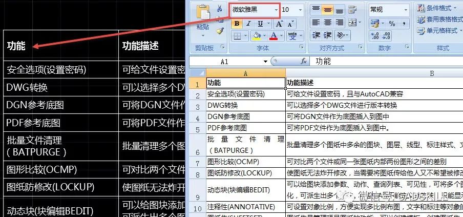 如果我們并不需要表格數(shù)據(jù)根據(jù)EXCEL表格實時更新的話,我們也可以用OLE的方式或選擇性粘貼為CAD圖元的方式來復制粘貼EXCEL表格,但這兩種方式默認狀態(tài)也是使用EXCEL字體,如下圖所示。