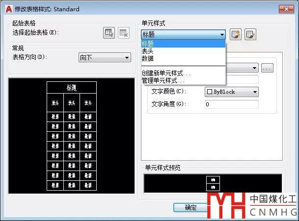 要注意,在表格樣式中標題、表頭、數(shù)據(jù)的文字樣式是分別設(shè)置的,如果光修改了表格數(shù)據(jù)的文字樣式,而標題和表頭仍用默認的STANDARD樣式的話,是可能出現(xiàn)上述問題的,因為STANDARD樣式?jīng)]有設(shè)置中文字體而自動替換成宋體顯示,如下圖所示。