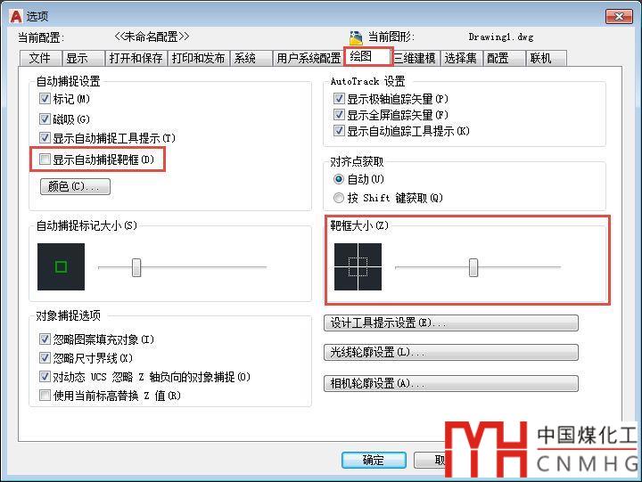 這個(gè)靈敏度是可以控制的,在選項(xiàng)OP對(duì)話框中有一個(gè)靶框的設(shè)置,但這個(gè)靶框默認(rèn)是不顯示的,如下圖所示。