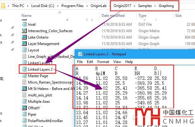 示例數(shù)據(jù)文件,C:Program FilesOriginLabOrigin2017SamplesGraphingLinked Layers 2。