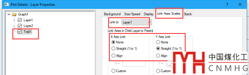 再設(shè)置圖層1中y軸的scale,因為圖層2和3的y軸都與圖層1相link,因此圖層2和3的y軸會隨之變化。