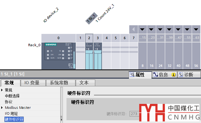 CPU1515-2PN、ET200S分布式系統(tǒng)、串行通信模塊1 SI (硬件標(biāo)識符:273)。硬件組態(tài)如下圖: