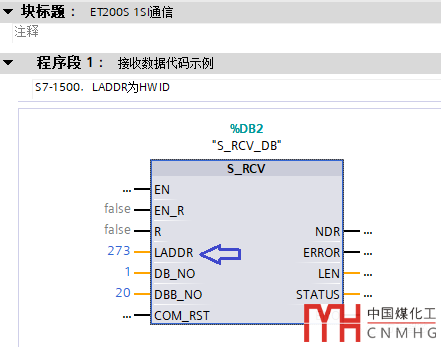 注意:本例程使用的S7-1500PLC,如果使用S7-300/400,LADDR應(yīng)該填寫1 SI模塊的起始地址。
