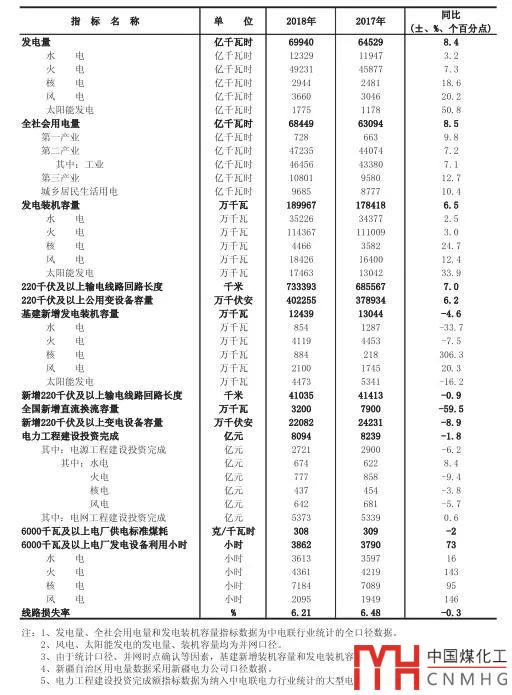 表9 2018年全國(guó)電力工業(yè)統(tǒng)計(jì)快報(bào)一覽表