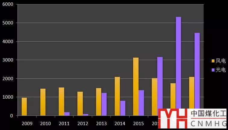 圖11 2009~2018年風(fēng)光發(fā)電新增裝機(jī)情況(單位:萬(wàn)千瓦)
