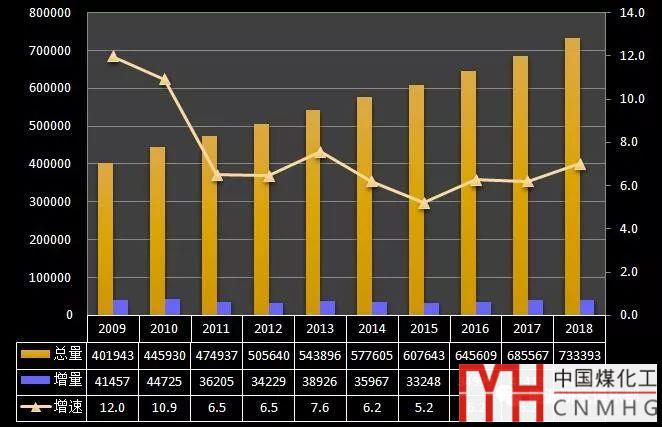 圖6 2009~2018年全國(guó)電力裝機(jī)及增速情況(單位:萬(wàn)千瓦,%)
