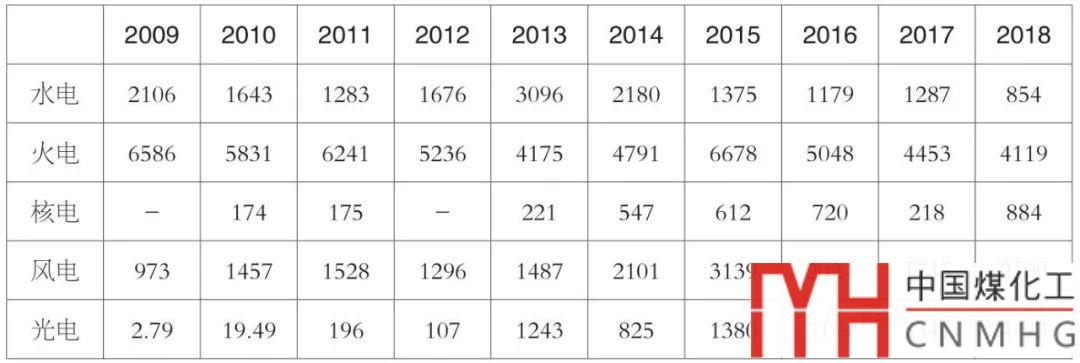 表3 2009~2018年各類(lèi)發(fā)電新增裝機(jī)情況(單位:萬(wàn)千瓦)