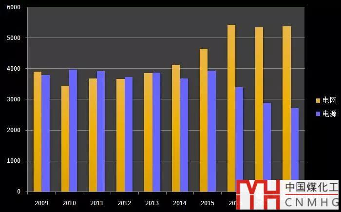 電網(wǎng)投資方面,近幾年來(lái),電網(wǎng)投資總體呈現(xiàn)擴(kuò)大趨勢(shì)。2009年,首次突破3000億元關(guān)口,連續(xù)五年保持在3400億元以上。2014年增至4000億元以上,2016年再上一個(gè)臺(tái)階到5000億元以上,2017、2018連續(xù)兩年電網(wǎng)投資依然在5000億元之上,保持了較高的投資水平。