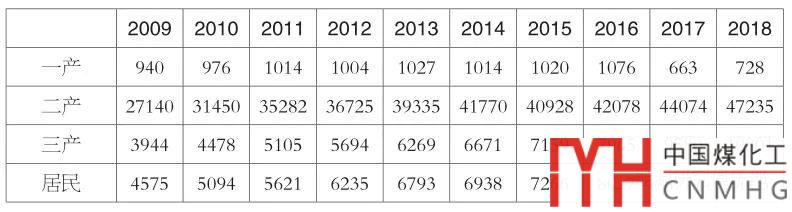 表1 2009~2018年分產(chǎn)業(yè)用電量(單位:億千瓦時(shí))