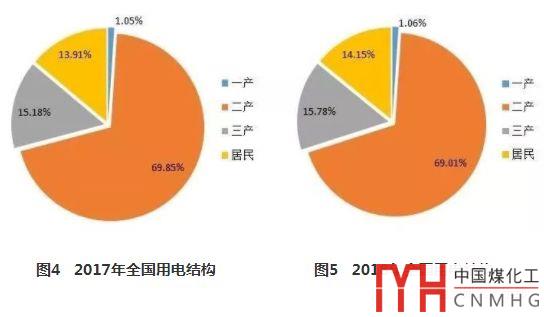 圖3 2017、2018年分產(chǎn)業(yè)用電量及增長(zhǎng)情況(單位:億千瓦時(shí),%)