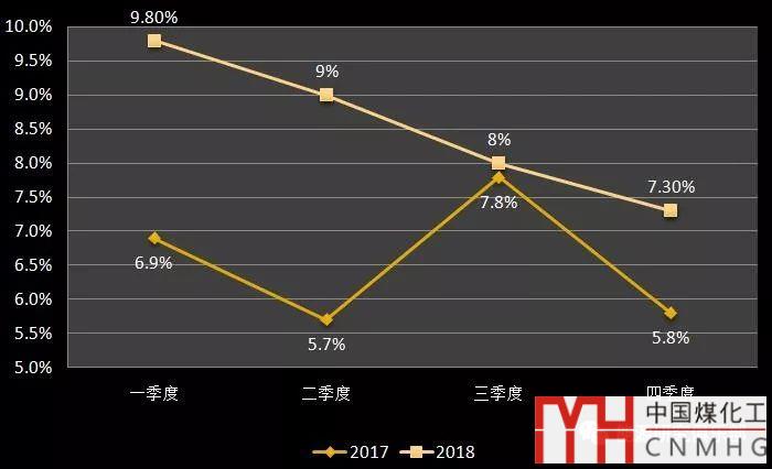 圖2 2017~2018年全國(guó)全社會(huì)用電量季度增速