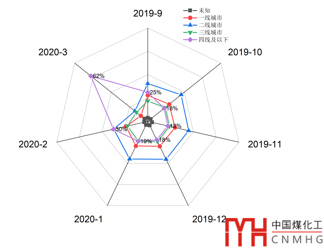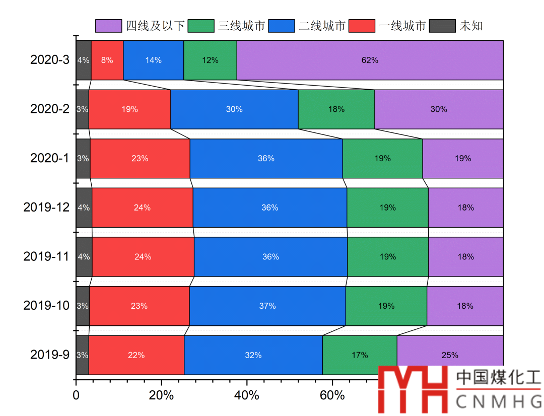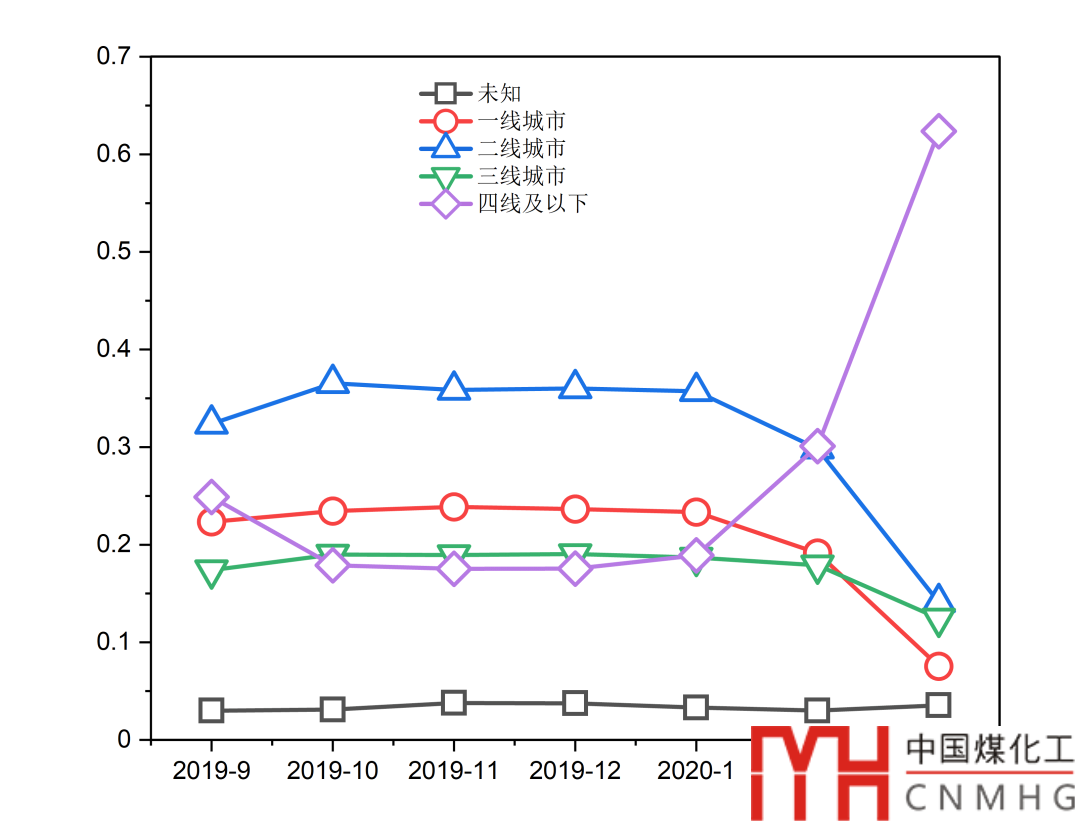 疫情開(kāi)始后,三、四線城市的常讀用戶比例逐漸增大,在2020年3月份時(shí)約為75%。這說(shuō)明大家放假回家后尚未返校,因此集中在小城市。