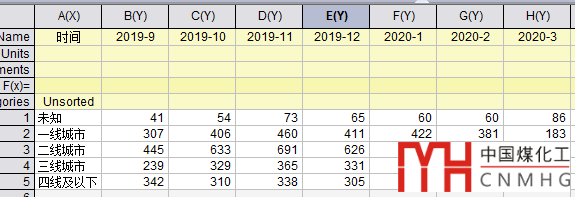 數(shù)據(jù)格式:數(shù)據(jù)的格式很重要,不同格式的數(shù)據(jù)可以繪制不同的圖形。第一例為城市,列方向存放時(shí)間數(shù)據(jù),列標(biāo)簽表示Y軸信息。