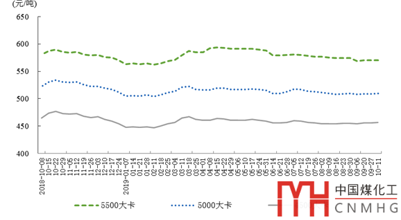由于需求不強(qiáng),沿海煤炭運(yùn)輸表現(xiàn)平平,到港船舶稀少,煤價(jià)低位徘徊,且進(jìn)口煤大量涌入,下游用戶壓價(jià)采購(gòu)表現(xiàn)突出,最終傳遞到終端煤價(jià),使港口成交價(jià)在今年夏秋之際保持低位徘徊,但也基本處于穩(wěn)定狀態(tài)。10月8日,環(huán)渤海動(dòng)力煤價(jià)報(bào)收577元/噸,環(huán)比下行1元/噸,而上一期為578元,環(huán)比持平。由此,基本可以判斷煤價(jià)將保持相對(duì)穩(wěn)定運(yùn)行的態(tài)勢(shì)。四季度,進(jìn)口煤限制措施對(duì)貿(mào)易商起到一定作用,進(jìn)口煤數(shù)量將比三季度略低一些,對(duì)國(guó)內(nèi)市場(chǎng)沖擊減弱;加之電廠庫(kù)存下降,冬季到來之前,階段性補(bǔ)庫(kù)將至,拉煤積極性提高。另外,四季度南方逐漸進(jìn)入枯水期,水電出力減弱;浙江等地“雙控”已經(jīng)超額完成,外購(gòu)電將有所減少,本地火電發(fā)電有所提升。從宏觀經(jīng)濟(jì)運(yùn)行來看,四季度,國(guó)家補(bǔ)短板、強(qiáng)基建等一系列新政策的實(shí)施將拉動(dòng)投資增速回升,水泥、化工等行業(yè)復(fù)工復(fù)產(chǎn),工業(yè)用電有望恢復(fù),帶動(dòng)市場(chǎng)煤拉運(yùn)量有所增加;而即將到來的取暖季,取暖負(fù)荷提高,電廠耗煤數(shù)量將大幅增加,沿海煤炭運(yùn)輸趨向繁忙,不排除煤炭市場(chǎng)有轉(zhuǎn)好跡象。審核:齊正平