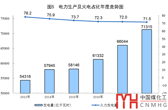 火電比重下降。2018年,火力發(fā)電量50963億千瓦時(shí),比2013年增長20.0%,遠(yuǎn)低于清潔能源發(fā)電71.8%的增速。火力發(fā)電占比71.5%,比2013年下降6.7個(gè)百分點(diǎn),電力生產(chǎn)清潔低碳化趨勢(shì)明顯。分地區(qū)看,山東、江蘇、內(nèi)蒙古和廣東火力發(fā)電量分列前四位,2018年分別為5525、4578、4164和3468億千瓦時(shí),合計(jì)占全國的34.8%。
