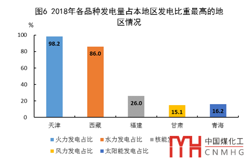 太陽能發(fā)電迅猛增長。2018年,太陽能發(fā)電量1536億千瓦時(shí),比2014年增加1284億千瓦時(shí),年均增長57.2%。分地區(qū)看,太陽能發(fā)電最多的四個(gè)地區(qū)是青海、新疆、內(nèi)蒙古和河北,分別為131、129、125和124億千瓦時(shí);占本地區(qū)發(fā)電比重超過5.0%的地區(qū)分別為:青海16.2%、西藏8.7%、甘肅6.0%和寧夏5.7%。