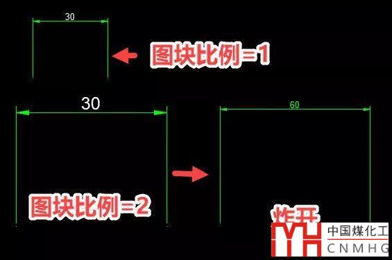 圖塊中的標注和常規(guī)標注還有很多一些的地方,比如修改圖塊比例時,塊中的標注和其他圖形一樣,標注值不會變,而標注界限、文字和箭頭的大小會跟隨變化的,當圖塊被炸開時標注會自動更新,標注箭頭、文字、標注值都恢復正常,如下圖所示。
