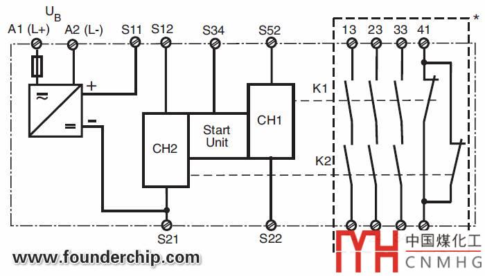 下面這張圖,是PNOZ X2.7P/X2.8P的內(nèi)部電路圖: