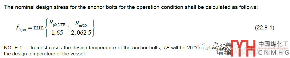 EN 13445的安全系數(shù)的列表也是在相應的標準部分,鋼材(螺栓除外)的安全系數(shù)在EN 13445-3的第六章;鎳基合金的安全系數(shù)在EN 13445-10的第六章,鈦合金的安全系數(shù)在EN 13445-11的第六章。法蘭用螺栓的安全系數(shù)在EN 13445-3的第11章;地腳螺栓的安全系數(shù)在EN 13445-3的第22章。