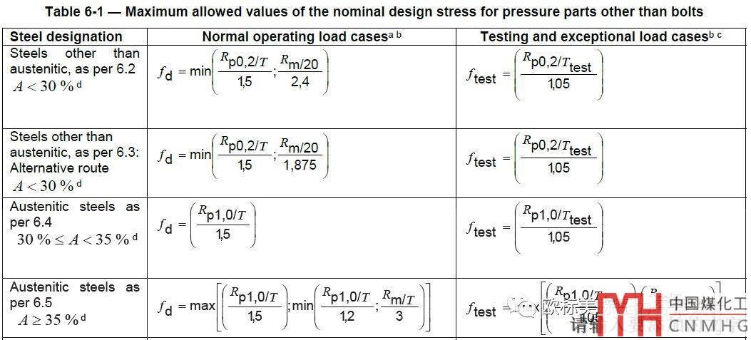 鋁和鑄鐵等材料的安全系數(shù)對整個壓力容器行業(yè)來說由于使用較少,就不列舉了。如有應用可以到EN13445-3,EN 13445-6,EN 13445-8標準中查相應的規(guī)定。