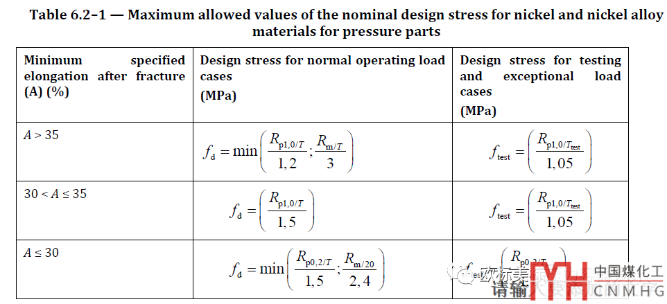 鎳基合金(EN 13445-10)的安全系數(shù)見下圖(注意由于編者的不同和鋼材的最小斷后伸長率的分界是有區(qū)別的,等號在哪邊的問題使用時要注意)